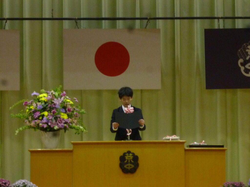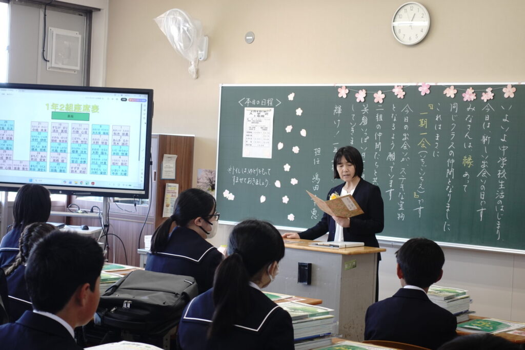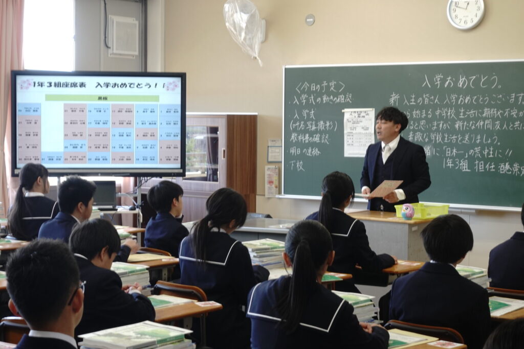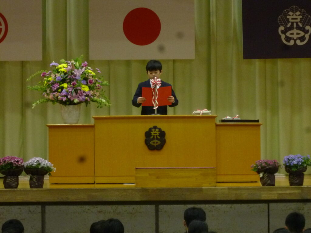 本日は、午前中、前期始業式及び学級開きでした。始業式では、2、3学年の代表生徒が新学年への抱負を発表しました。入学式では、2,3学年の中から選抜された生徒たちが式の前に本校の校歌を立派に披露しました。本日、1年生93名が入学しました。1年生も立派な態度であったと思います。一緒に頑張っていきましょう。
