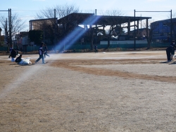 2025年の部活動最終日です。外の部活で協力し、校庭整備を行いました。